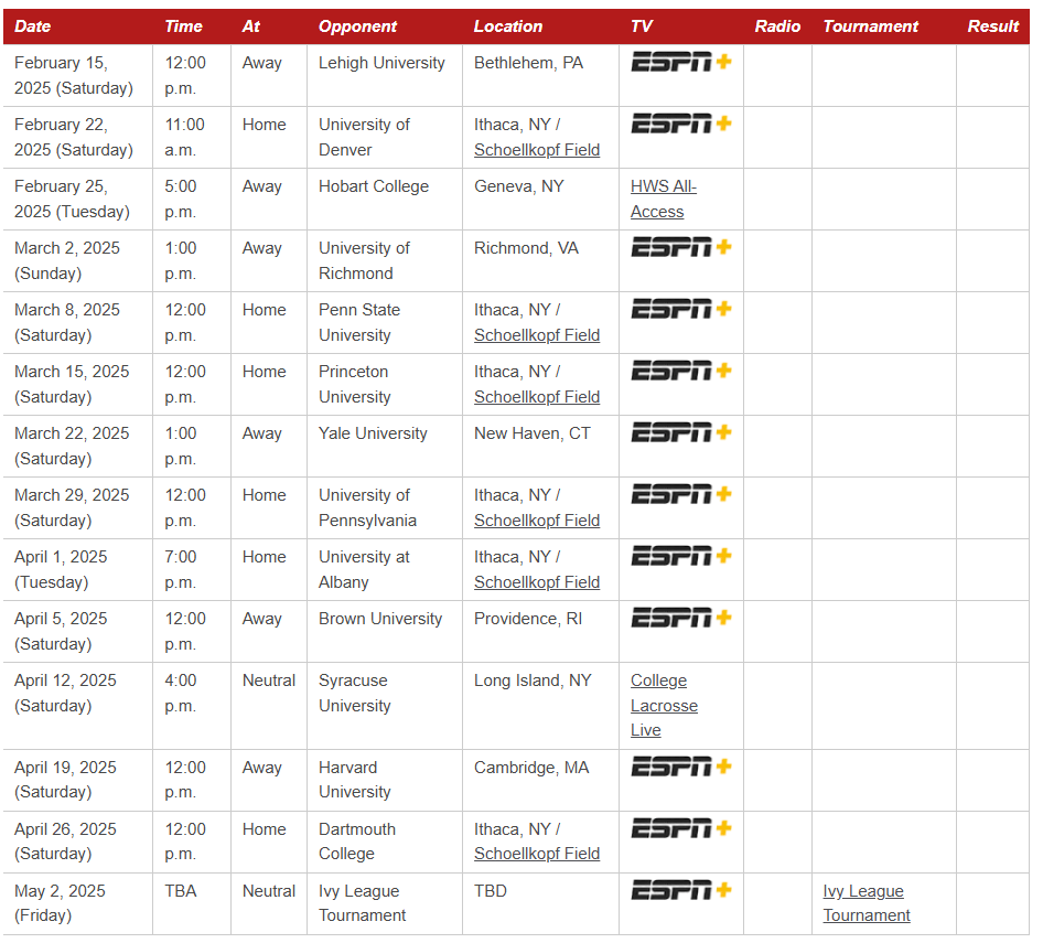 CJ and Caden have begun their season quest for Championship Weekend respectfully for Cornell University and Rutgers University. See here their season schedules: