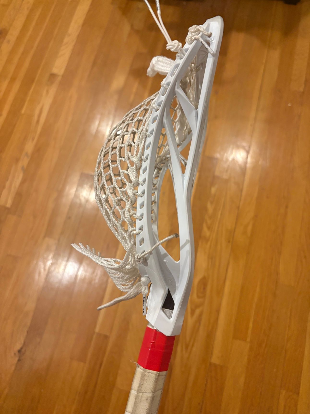 “For my stringing - I like to have a middle to low shallow pocket. I like the low pocket because the ball sits well when I am dodging. I like the shallow pocket to have a quick release. In box lacrosse in particular, you need to be able to quickly shoot or feed when the opportunity arises.”