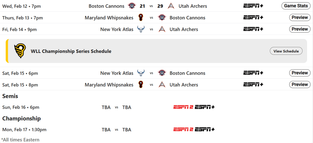 PLL 2025 LEXUS CHAMPIONSHIP SERIES ROUND ROBIN SCHEDULE - BOSTON CANNONS